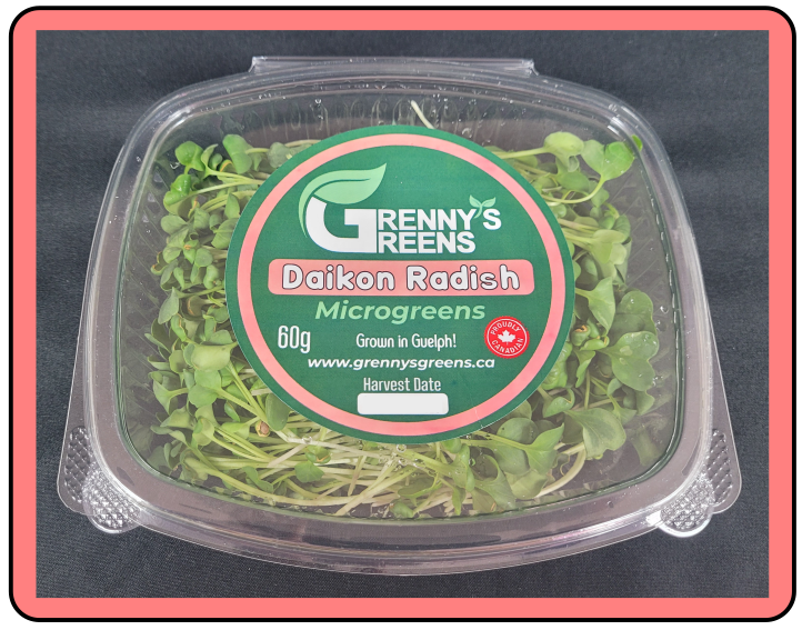 Flavour & Texture: Strong spicy, peppery flavour similar to that of the adult Radish with a slightly stronger kick than Rambo radish microgreens. Their texture is tender yet crisp, with medium stems and leafy tops that add a light crunch.